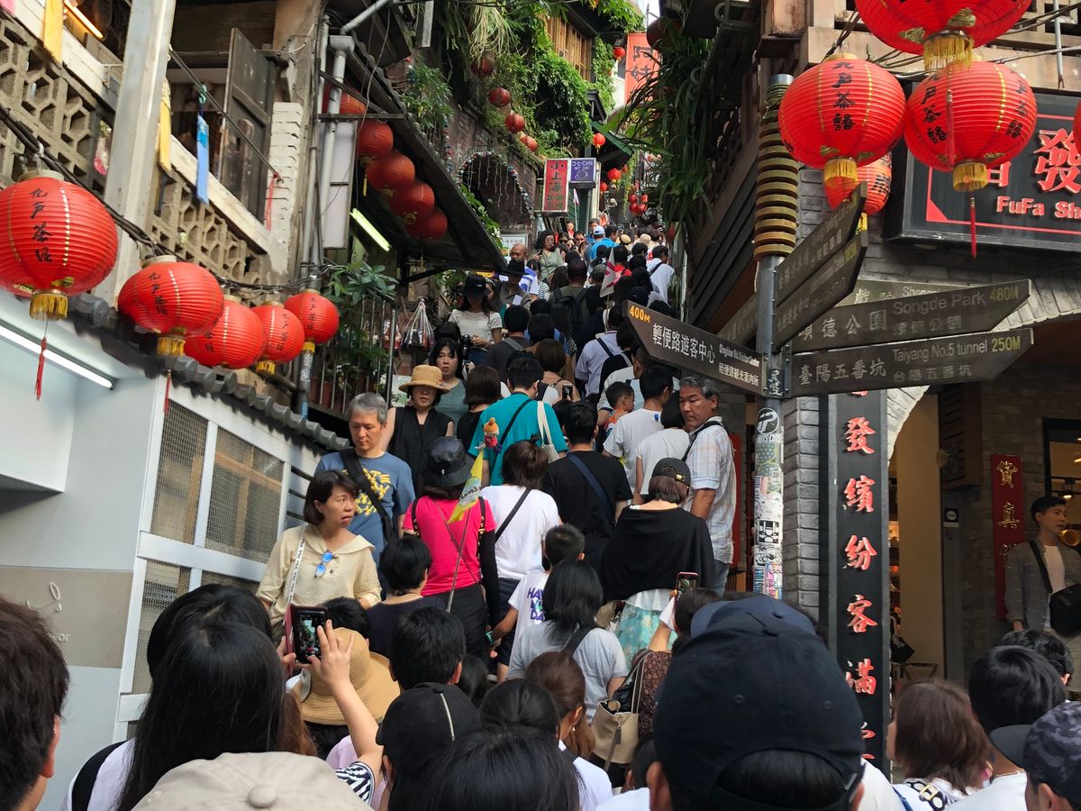 ツアーが大人数とのことで、九份の混雑回避のため、九份+十分組みは、十分のランタン経験が先になったが、日没前のランタンは今一つ。九份は階段がめちゃ混みで、何とか有名な景色は写真におさめることはできたが、時間が足りなかったのは事実。まあ、効率的に九份と十分ランタン経験できるということでそこそこ満足でした。