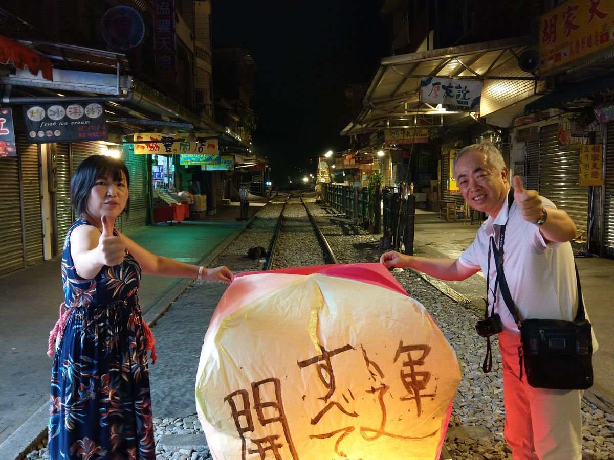 九份は日が落ちるまで観光はできませんでしたが、夜に向けて観光客が増える前 提灯の明かりがつき始めた頃に退散でき良かったです。8月の暑い時期、あの狭い道を移動するにあたって、人が多すぎると大変かと、、、。十份も 説明を受けてランタンを飛ばすまで 大変早く進み、ストレスはありませんでした。線路を走る電車も見れて良かったです。