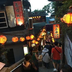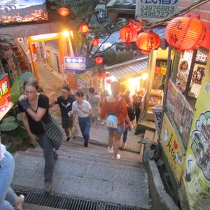 夏休み前の平日というのもあってか、日本人5組ほどでの参加でした。ガイドの黄さんの話がおもしろく日本語も上手で九份までの1時間くらいの道のりもあっという間でした。九份は山の中なので気候が変わりやすく雨を心配していましたが雨が降ったのは向かう道中だけで傘をさすことなく観光できました。ただ、雨が降った後の階段や道は滑りやすくなっているので動きやすい靴で行くことをおすすめします。また、ほとんどの商店街でカードは使えないのであらかじめ現金を多めに持って行った方がいいです。エクスチェンジは郵便局で出来ますが窓口は16時までなので注意が必要です。おすすめは、花文字のお店です。名前や好きな文字を花文字にして描いてもらえます。九份に3店舗あり、家族経営のようです。お兄さんやお母さんによってタッチが全然違うので比べてみるのもひとつの楽しみです。日が暮れるとランタンにも明かりが灯り、街並みが綺麗ですが同時に、狭い通路に人で溢れます。階段を登りきるのにも時間がかかります。今回のコースは九份の後、バスの下車を士林夜市、台北駅、マッサージ店の3箇所で選べます。やはり士林夜市で降りる方が多いようです。私も士林夜市で降りました。士林夜市はとても広く、はじからはじまで全部見て回るとかなり時間がかかる?ようです。ご飯は地下にあるフードコートのような所が衛生的で日本語メニューもあるので安心してゆっくり座って食べることができます。かなりシンプルなツアーですが安く、王道な九份や士林夜市に行きたい方におすすめのツアーです。