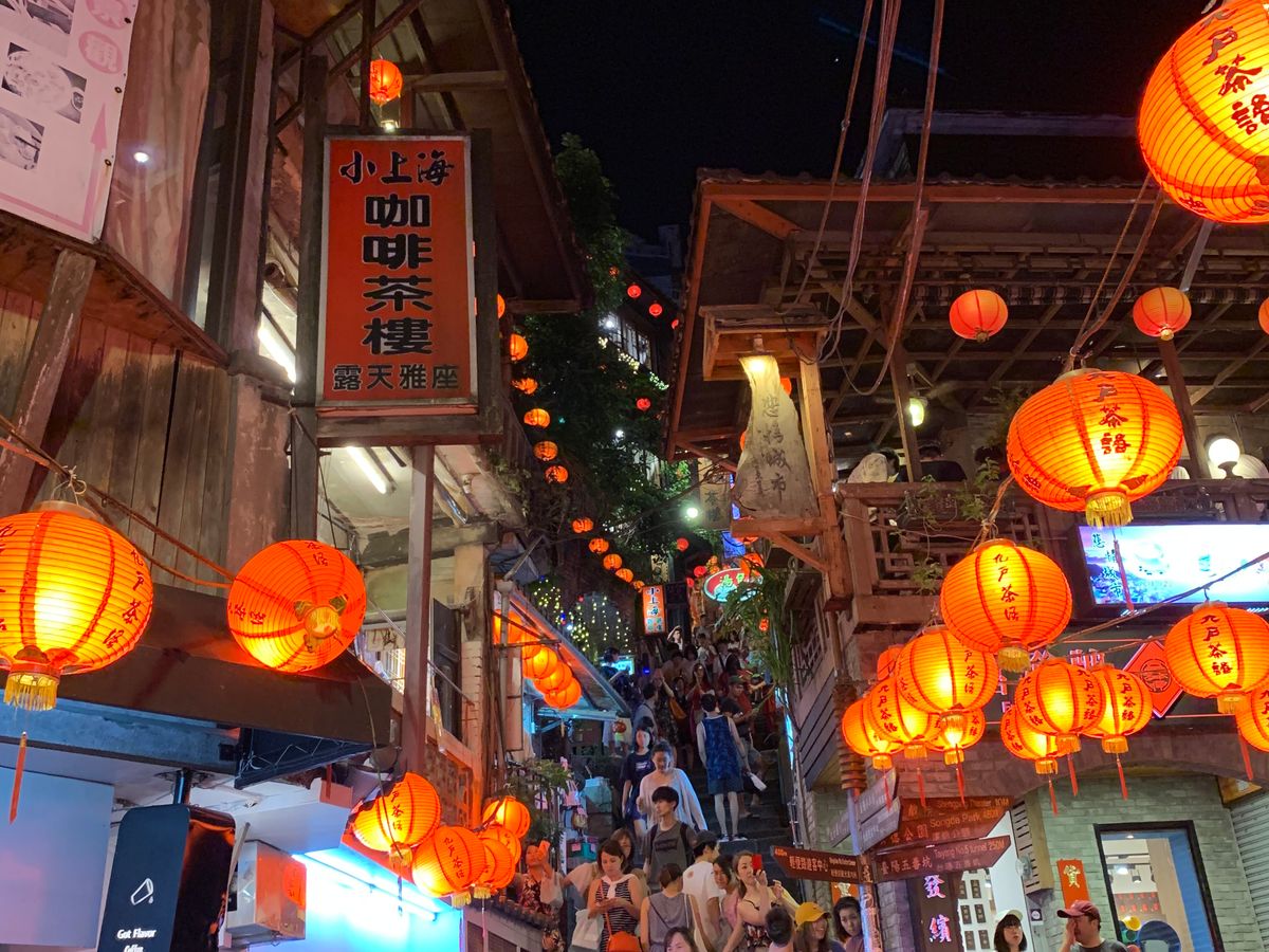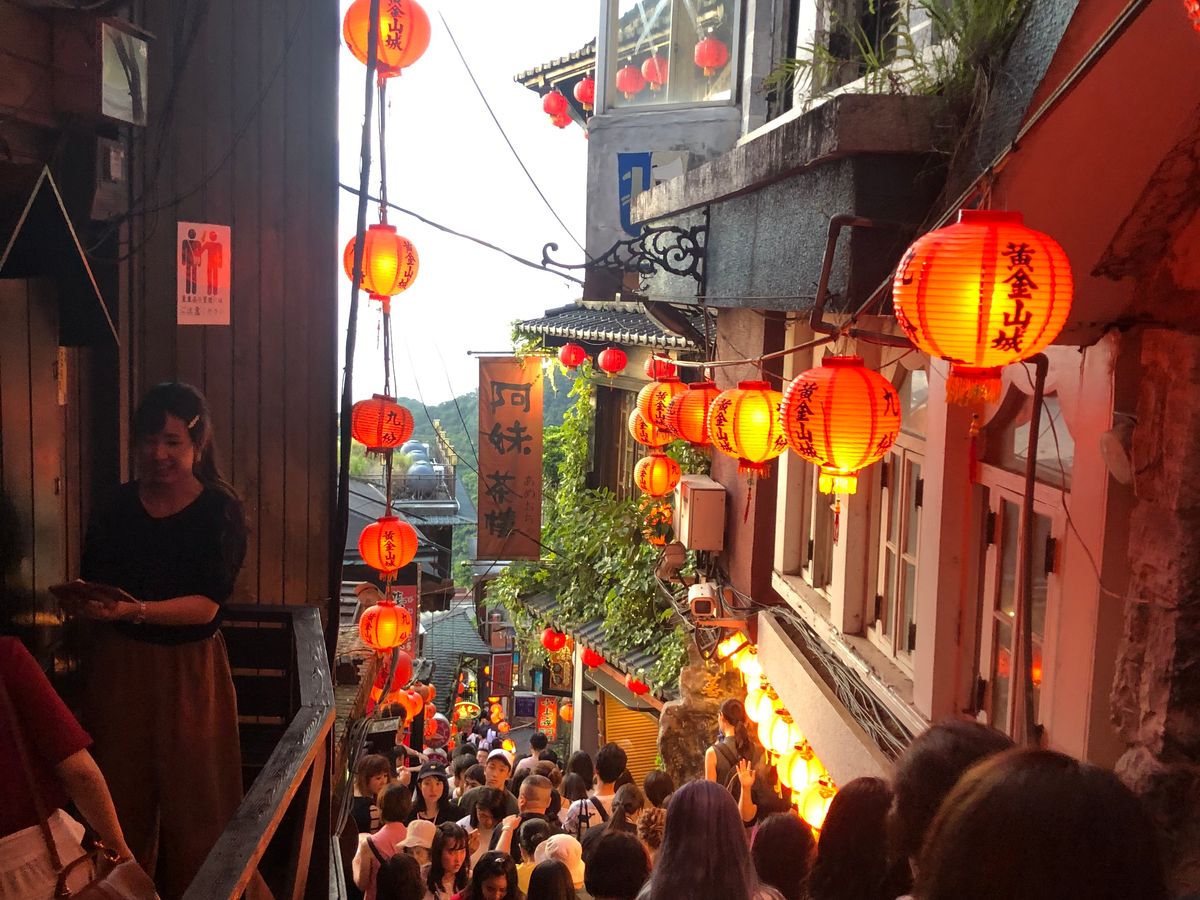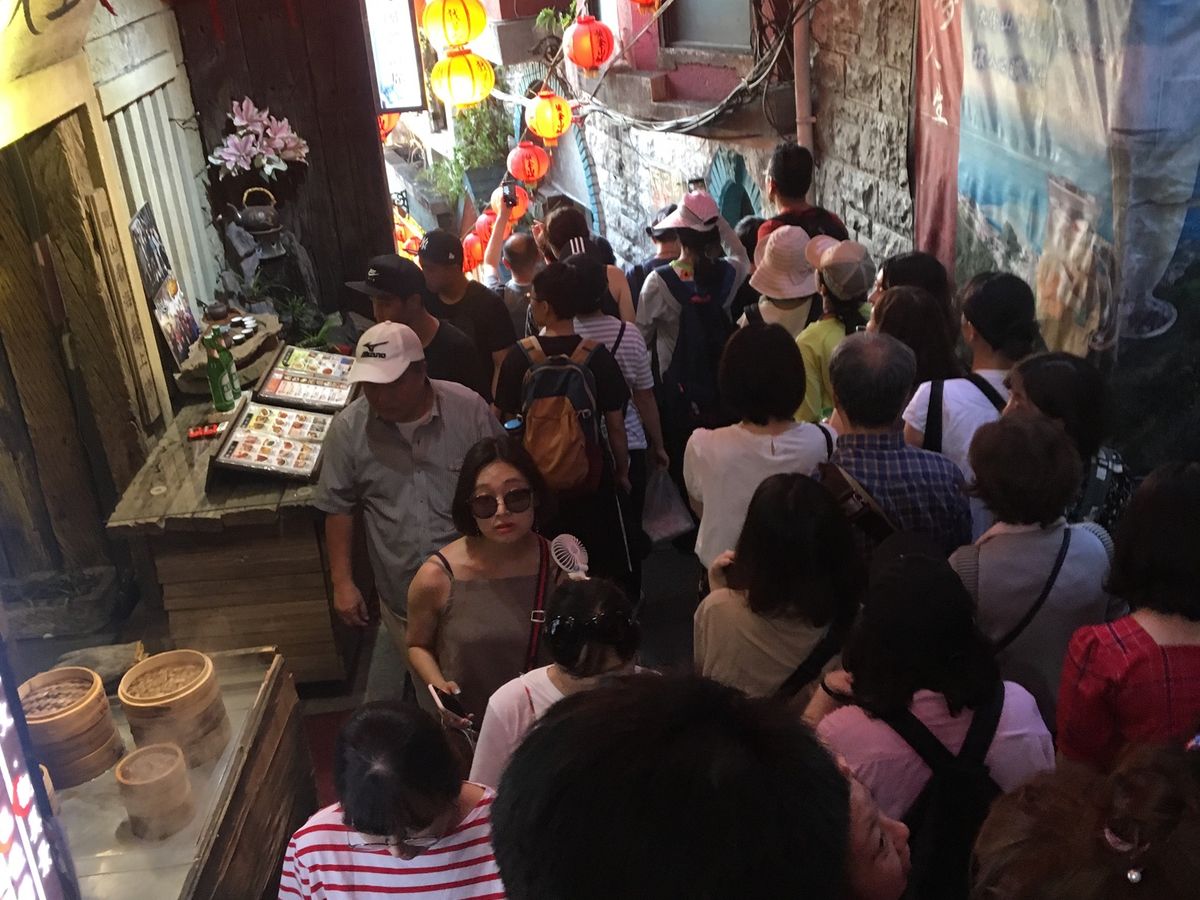 台北から1時間のバス移動で楽ちん移動で体力も温存。人気の九份はやはり大混雑ですが、いく価値はアリ!です。茶館には入らず、写真を撮って少し散策したら、階段下の景色がきれいなレストラン(山の細道というお店)で、ゆったりと東シナ海の夜景を眺めておいしい食事(私はおこわと薬膳スープのセット)をゆっくり楽しめました。人混みが苦手なは、屋台風な食べ物よりこちらがお勧めだと思います。