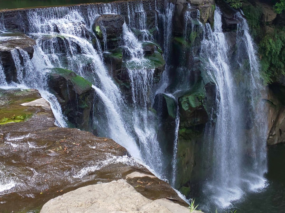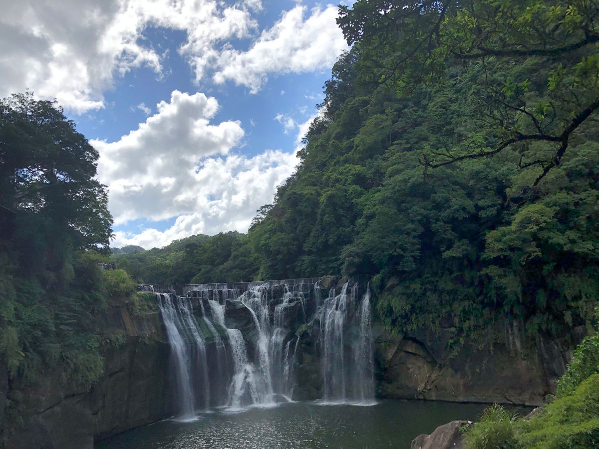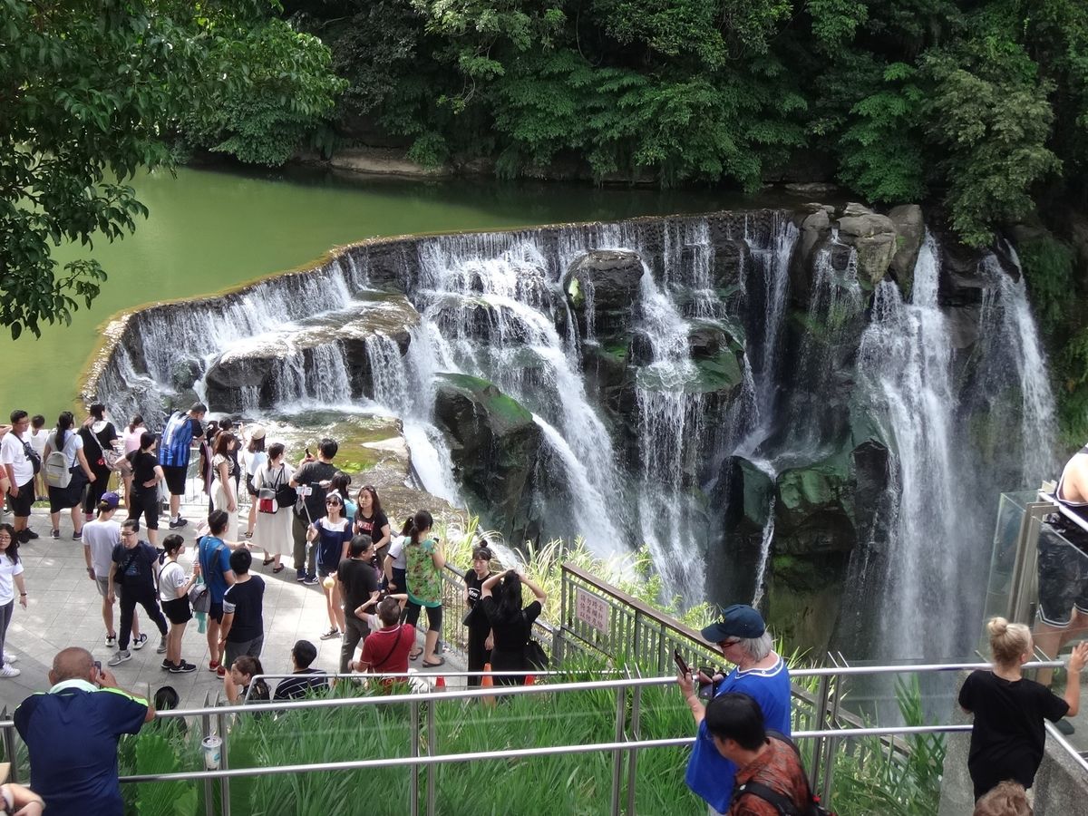 その日は真夏の太陽だったので日傘があれば良かったと思いました。十分の滝ツアーでは吊り橋を渡って少し階段のある道を進むと綺麗な滝を見る事が出来ました。九份の街では階段が続く小道を歩いて突き当たりの小学校のある場所まで登り景色を楽しんでから沢山のお店が立ち並ぶ中可愛いお土産を買いました。