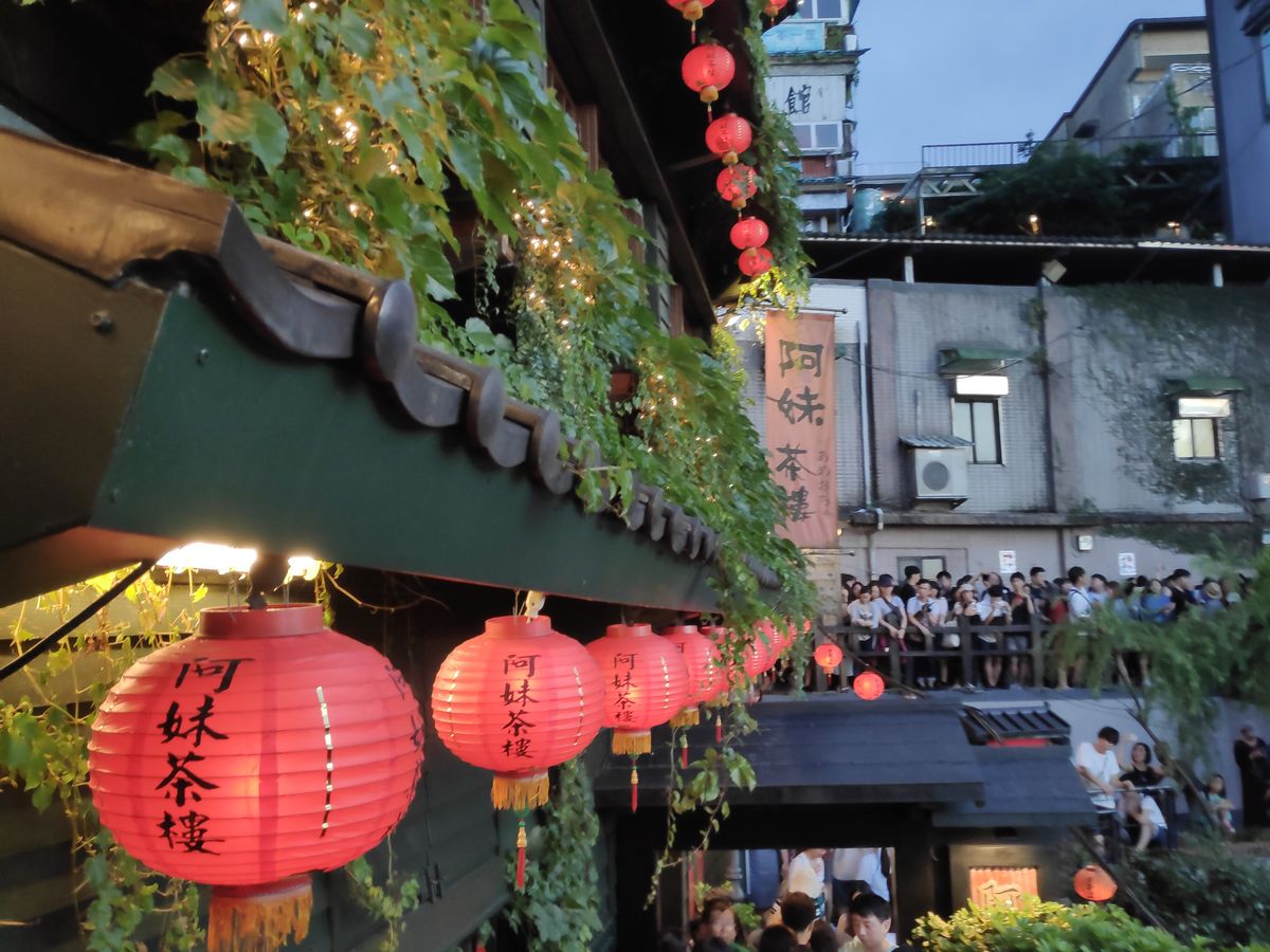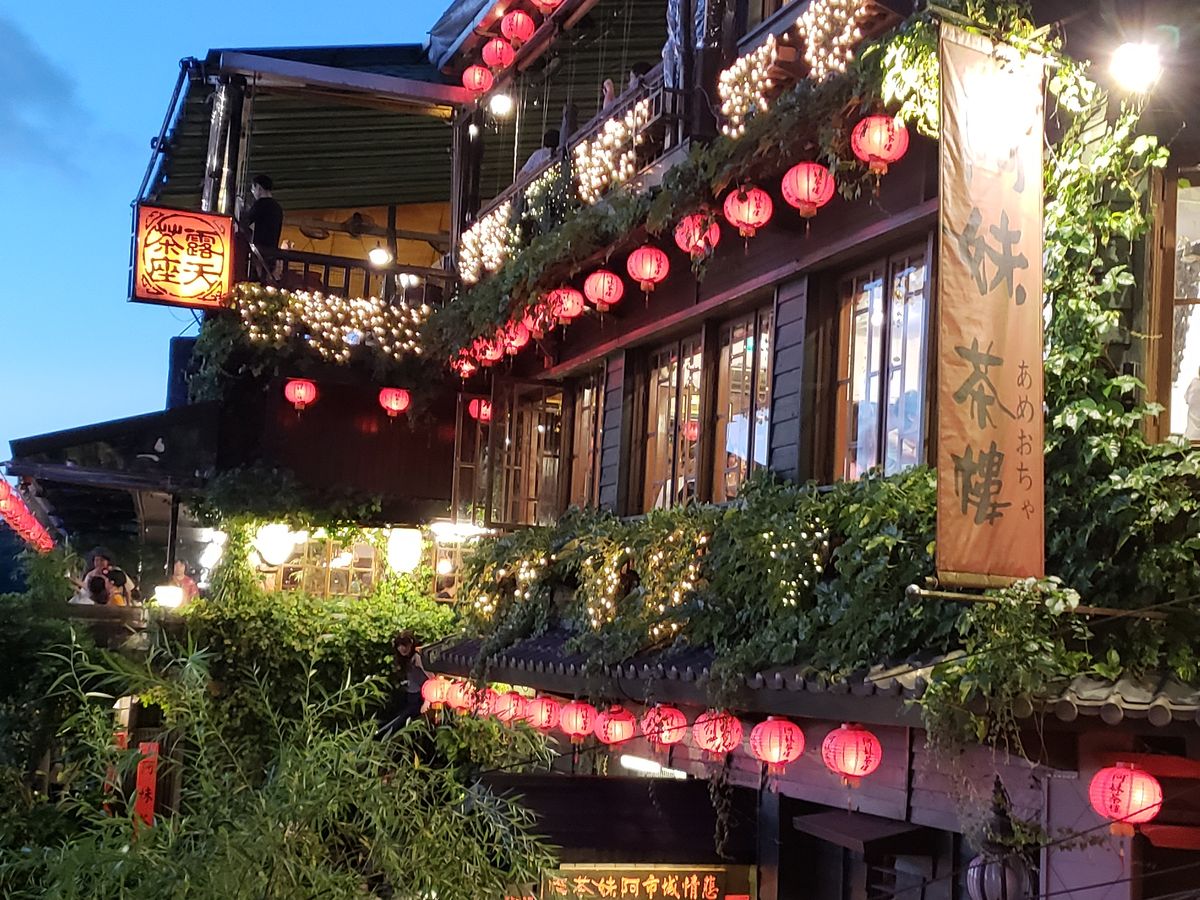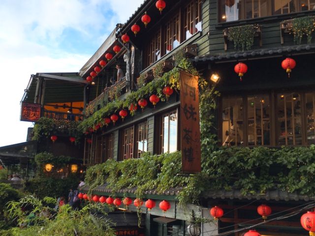 九份は遅かったのか、人もそんなに多くなく、そして初めて雨も降らずに、お茶屋さんにも行けて、すごくよかったです。