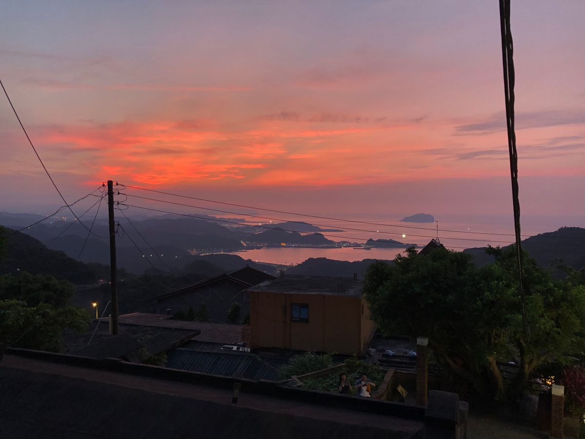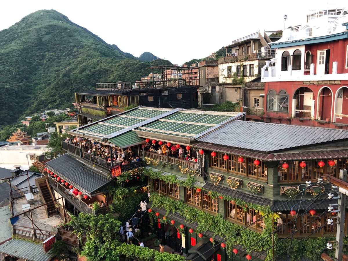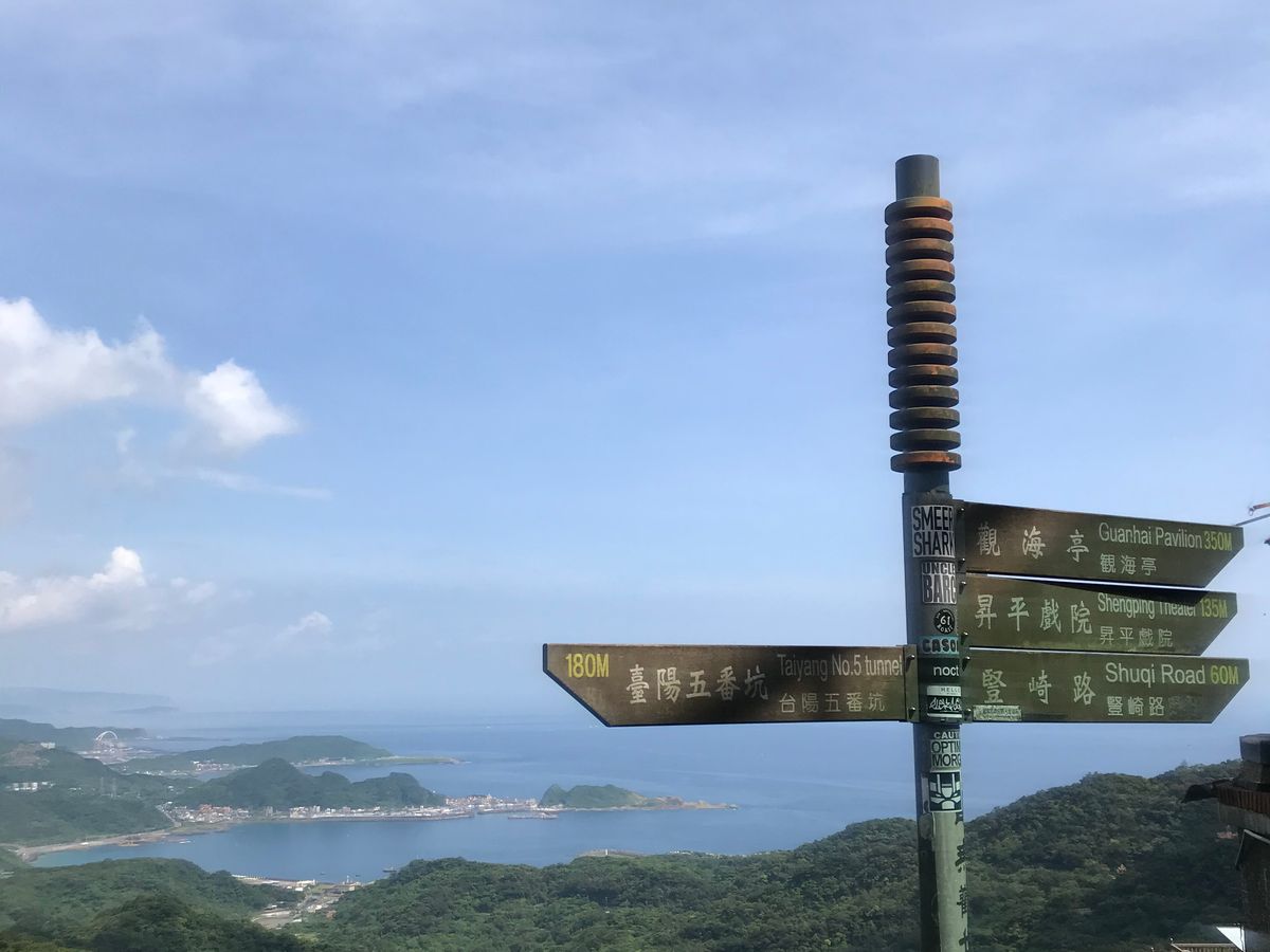 九份では快晴で、見晴らしが良く、街の雰囲気を感じつつ、美味しい冷たいぜんざいも楽しめました。道幅が狭く、坂を登るため、空いている午前中の観光で正解でした。2時間あれば、十分に観光できます。