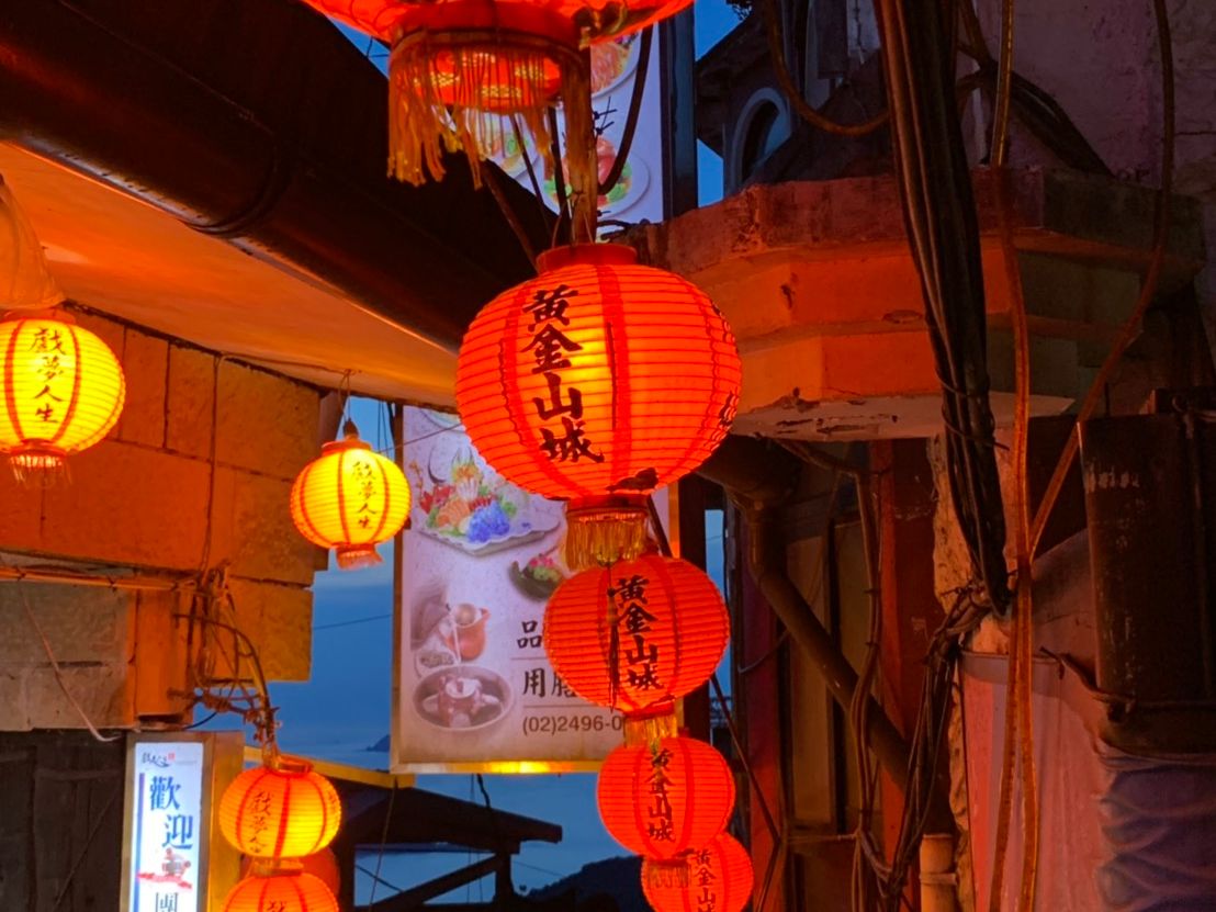 九份では2時間ほどの観光時間を頂き、ちょうど夕方からうす暗くなるくらいの一番いい時間でした。その分、観光客もどっと増えて階段ですれ違うのが大変でした。