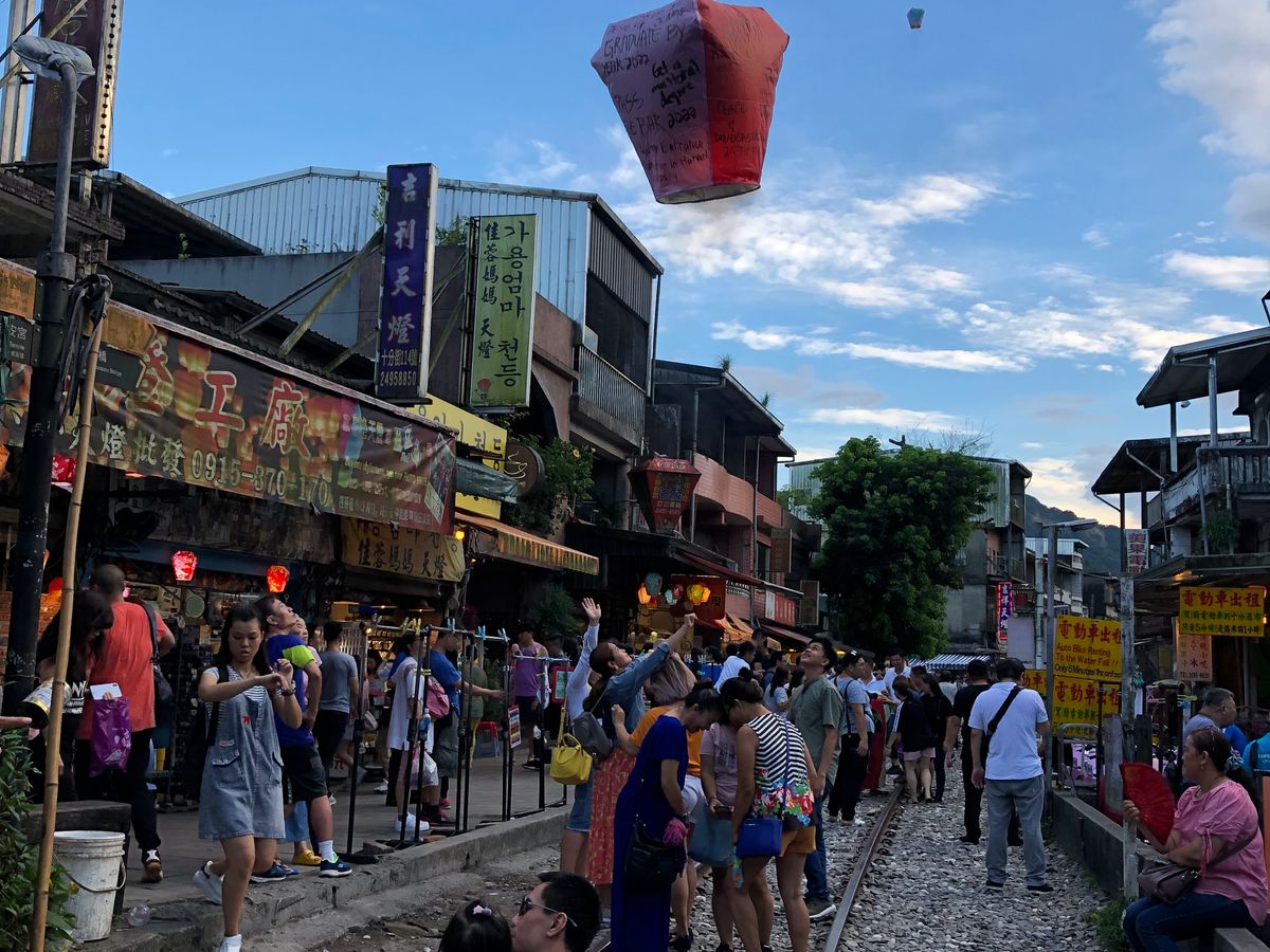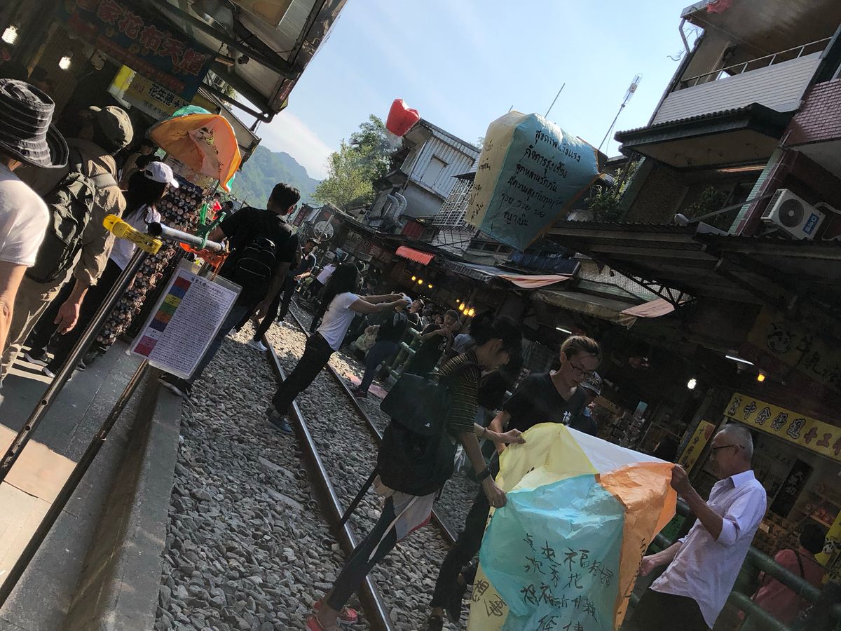 十分(天燈上げ)は、はじめ乗り気ではなかったけど、電車が今でも走っている場所を利用してるので、なんか悪いことしてるようで楽しかった。