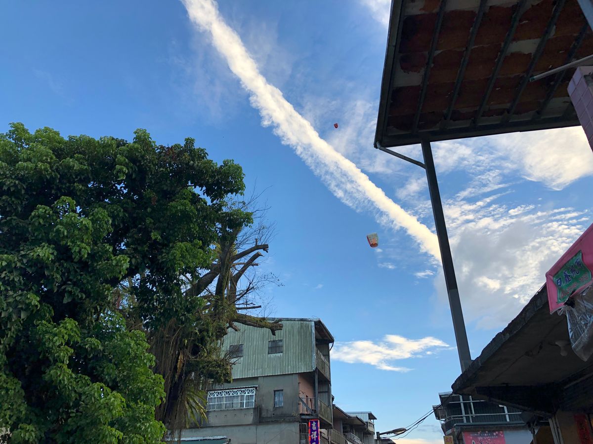 両替が無事に終わり、いよいよ十分へ向かいます。片道1時間ほどかけて目的地へ到着すると、ガイドブックなどでよく目にする光景が!色とりどりのランタンが上空へたくさん飛んでいました。