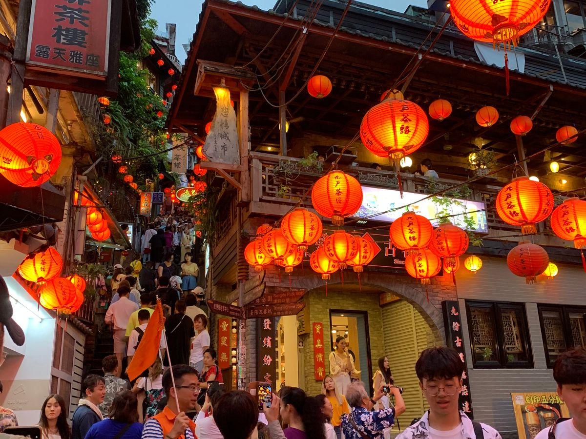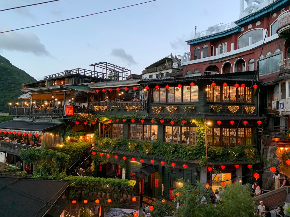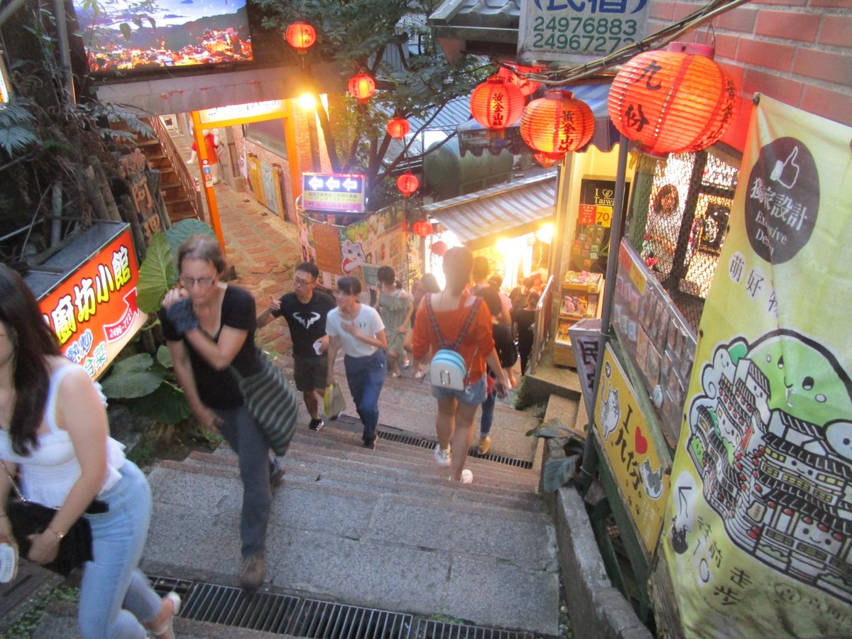 台北市内からバスで約一時間、山奥に現れる九份の幻想的な街並みに感激しました。ガイドさんの案内も親切で分かりやすい。阿妹茶酒館でお茶をしたいと言えば案内してくれました。夕食まで、お茶をしてから街を散策する時間も十分にありました。海悦楼からの眺めは最高で、人々が混み合う中、上からゆっくりと撮影でき、これだけでもこのツアーに参加した価値はあり!唯一の残念は、お料理が不味く、他のグループと同じお皿に盛りつけられてくるので、気を使うのが面倒でした。