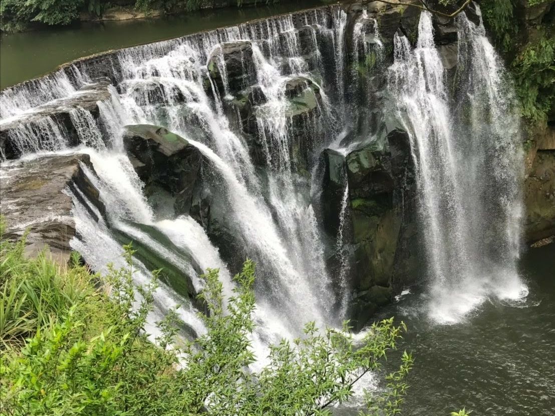 十份の滝:前日雨・台風の影響で迫力ある滝を観れました。濡れます笑 案内して頂いたトイレは綺麗です。(紙は外に備え付けられているためポケットティッシュを持っている方が安全です)