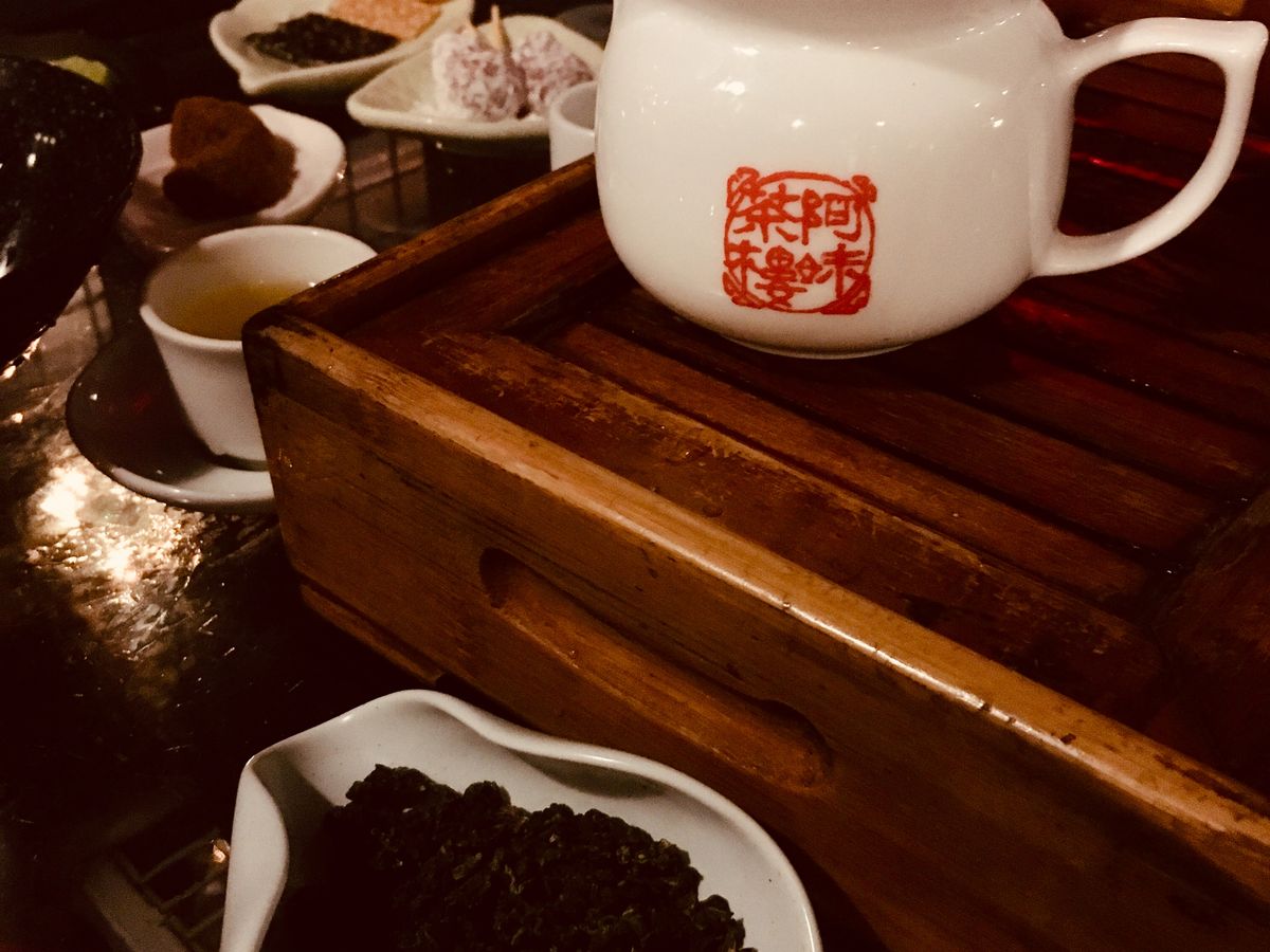 近くのお店で軽く食事をして、いよいよ阿妹茶樓へ。テラス席に通され、店員さんが、日本語で分かりやすくお茶の作法を説明してくれます。