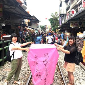 ガイドの方はとても親切に対応してくれてよかったのですが、バスに乗ってスケジュールを聞いてがっかり。。ホームページのスケジュールでは九份に先に行くこととなっていますが、十分が先となり夜に天燈上げができなかったのです。あの幻想的な夜空をみたかったのですが6時前の明るい中上げました。