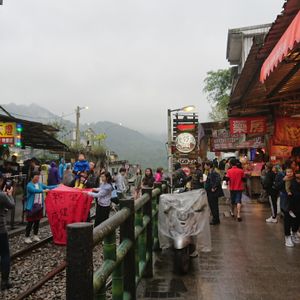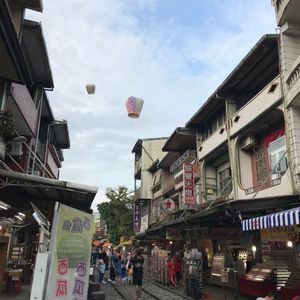始めにガイドさん判断で十分天燈上げそれから滝、九份、饒河街夜市の順番でツアーが進みました。十分はノスタルジックな雰囲気で空に沢山の燈が上がり素敵な体験が出来ました。