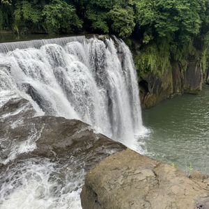 シェラトン台北を私たちともう一組の4人で出発。九份地方は年間の半分が雨との情報通り、滞在3日目にして本格的な雨模様でしたが、初めに訪れた十分の滝は思いのほか迫力があり良かったです。