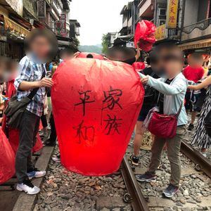 十分での天燈上げ、最高でした。九分はすごく混雑してましたが御茶屋さんにも入る事が出来て満喫しました。