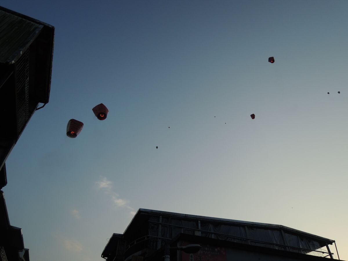 最初に十分の滝へ行き、約1時間位散策、その後、天燈上げに行きました。天燈の色を4色にすると50元掛かると言われたのですが、折角なので50元足して4面に願いを書きました。