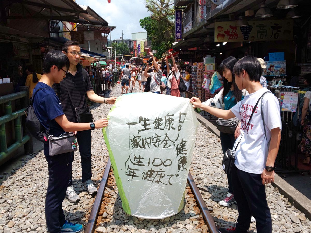 GWど真ん中ということもあり、他の団体も含めたツアー客はとても多かったことから、私たちの団体は先に十份に行って行燈上げをしてから夜の九份