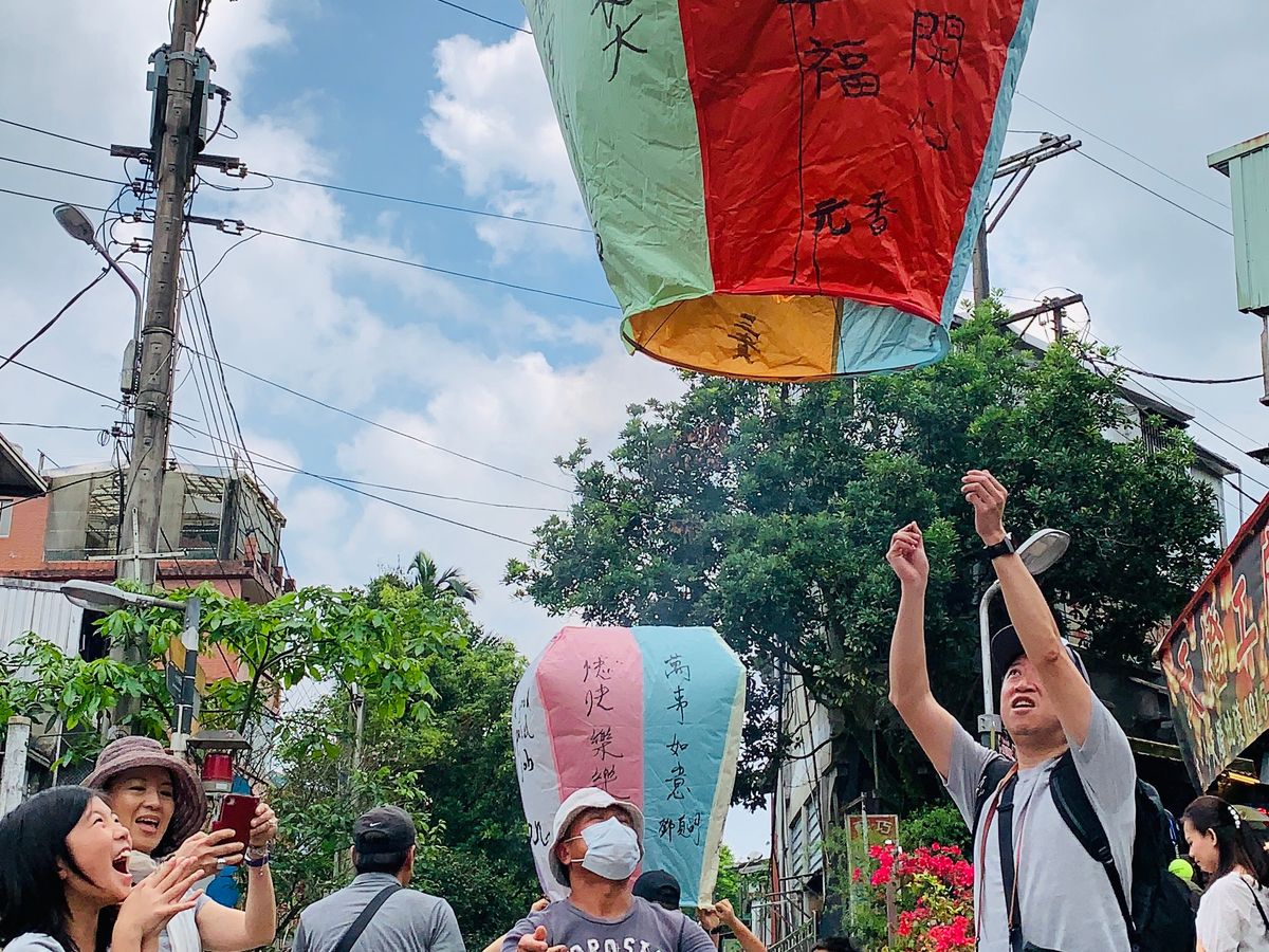 あいにくの雨の中、十分での天燈上げは無理と諦めていましたが、車が十分に着いた時は雨も止み、風も強く吹かずに天燈を大空へ舞い上げることが出来ました。記念に残るような最高の動画まで撮ってもらえました。