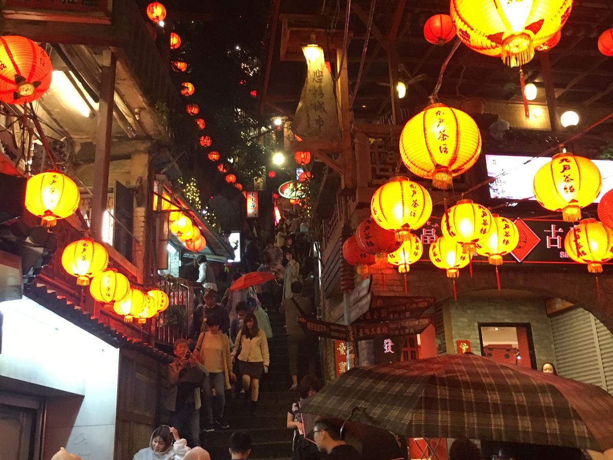 九份は二度目ですが、今回のツアーは夕方18時に台北駅を出発しお茶を楽しんだあと、観光客の少なくなった夜の九份をゆっくり見学することができてよかったです。前回は雨で足元が悪かったのと夜のピーク時に九份を見学したためとても大混雑していて、傘をさした状態で大行列の階段を登ることが面倒で、上まで見学するのをあきらめました。今回は時間がたっぷりあるので階段の途中の気になる建造物やお店を一つ一つ見ることができました。お店でのお買い物は遅い時間なので期待していませんでしたが、お茶の予約の前にはガイドさんが教えて下さったおいしいお店のタピオカミルクを飲んだり、お茶のあとも数軒開いているお店があったので記念にネックレスを買いました。今回はお天気に恵まれましたが、もし雨が降っていてもお茶を楽しんだり、傘をさしてゆっくり歩いて見学できるのでいい時間が過ごせると思います。九份の幻想的な雰囲気を味わうのにおすすめです。