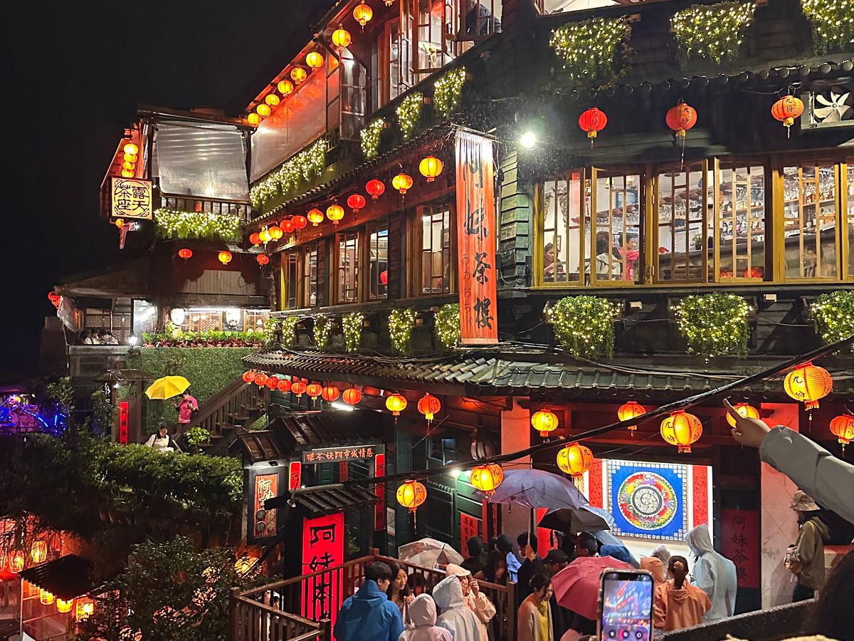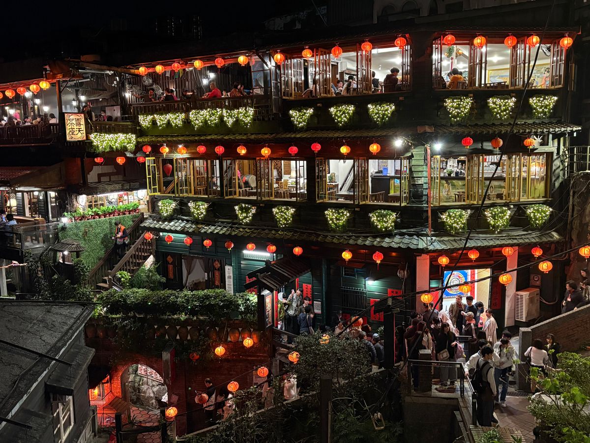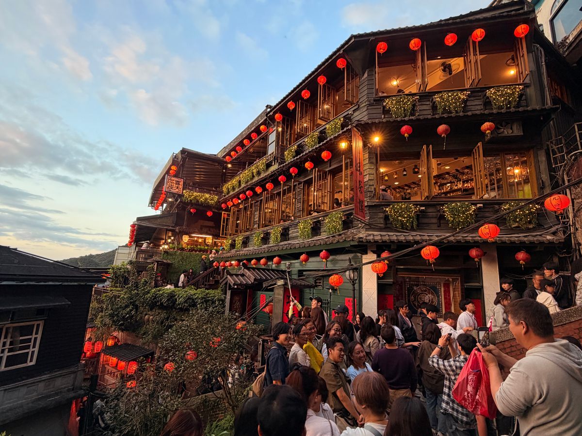 陳さんのガイドは最高に良かったです。天燈上げは思ったより大きく、空高くまで上がりました。列車の線路の上で上げるのが不思議な感覚でした。九份はすごく混んでいます。いい雰囲気なのですが、千と千尋の神隠しの湯屋とは印象が少し違いました。