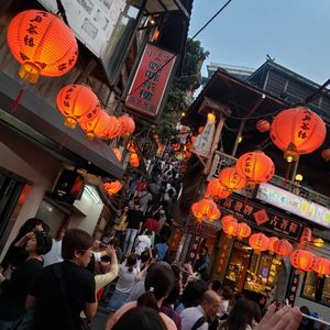 ランタンを先に上げ、九份を後半に回したツアーでした。夕方に十分に着いた為少し明るく、ランタンが上がる様子がよく見えたのでよかったです。線路の上からランタンをあげるのですが、電車が実際に通る時間に当たり、目の前を通過する電車を見ることが出来ました。とても迫力があり、思わず沢山写真を撮ってしまいました。順番の関係により九份は遅めの時間に入る形になったので、とても空いた状態で見て回ることができました!湯婆婆の館と呼ばれる有名な御茶屋さんや、今回の目当だった、湯圓が食べられるスイーツのお店にもすんなり入れて快適でした。ちらほら閉店作業に入ってしまっているお店もありましたが、お土産を買ったりするのに困ることはありませんでした。すっかり日は落ちていたので、帰りのバスから見る九份の夜景も凄く素敵で感動しました!乗り込んでからツアーが終わりバスを降りるまで、ずっと詳しい解説や楽しいお話で旅を盛り上げてくださったバスガイドさんに感謝です!