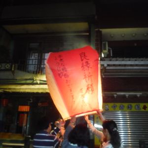 十分 日本にいる家族へ思い馳せて天燈に書いた願い事 山間の暮れ始めた空にすーっと上がっていく様は何とも幻想的です