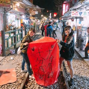 十分の天燈上げの際には私達のグループだけだったため、ゆっくりと願い事を書き、写真も撮ってもらえました。夜空に上がっていく天燈はとてもきれいで本当に行って良かったと思いました。