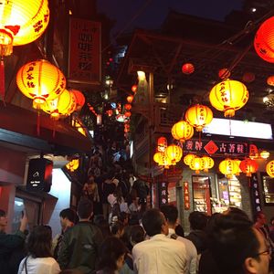 とても人が多くて心配していましたが、ツアーの方の采配で、心配していた混雑もそれほど苦ではありませんでした。先に十份のランタン飛ばしで盛り上がり、九份散策。特にガイドのメイさんの説明と案内で楽しく過ごせました!