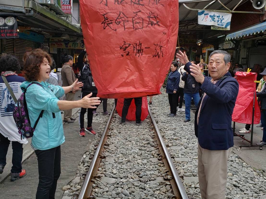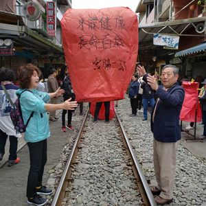 前回九份に来た時は混んでいて十分に満喫できなかったのですが、今回は送迎があったので行き帰りの心配もなく、絶景の九份茶坊でゆっくりもできて大変満足でした。十份では風が少し強く、うまく飛んでいない人達もいる中、うまく飛ばすお店を案内してくれ、丁度1時間に一本通る電車も通りました。ガイドの丁さんは新しい情報や地元の人しか知らない情報などとても丁寧に教えてくれました。帰りも夜市着にして満喫できました。本当にありがとうございました。