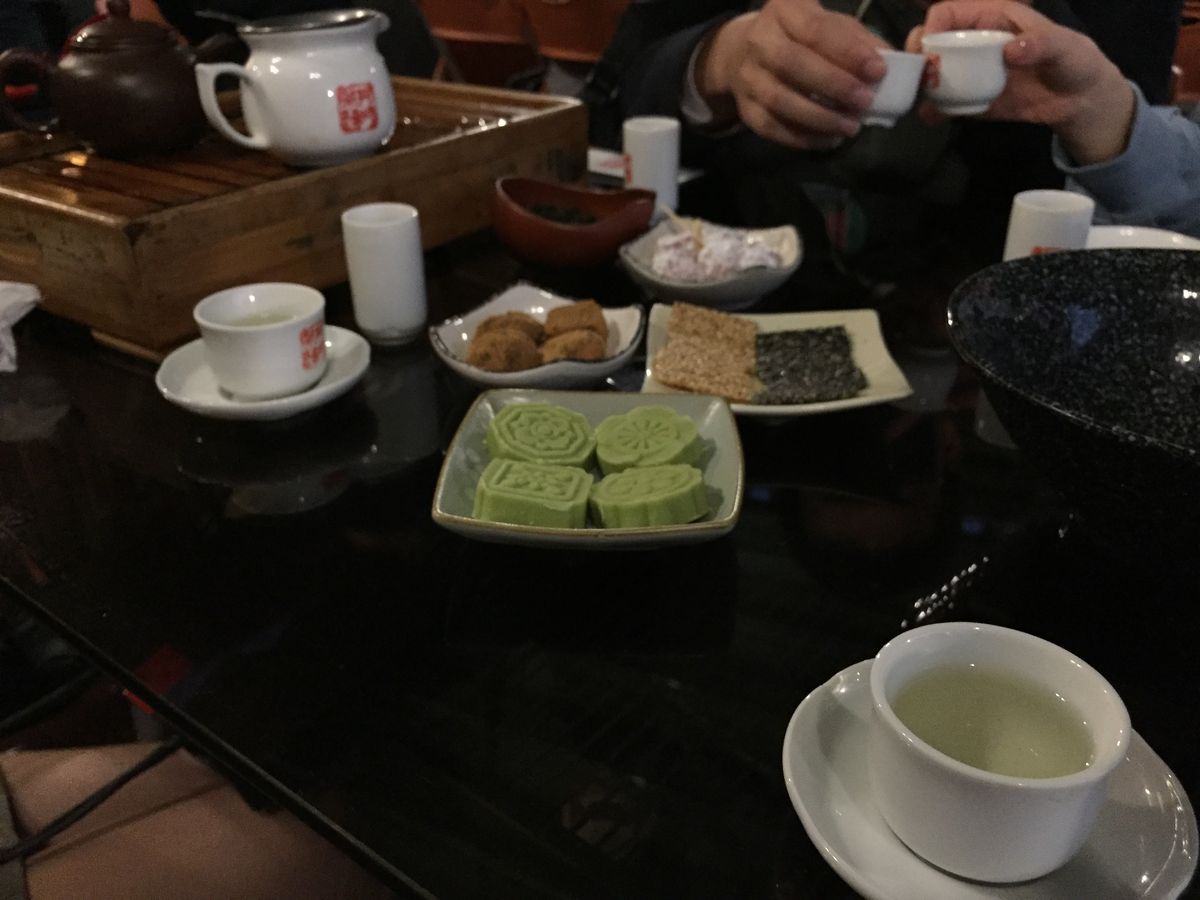 有名な写真スポットの阿妹茶樓に連れていかれ、メニューを選ぶことなく、お茶セット300元と言われた。
