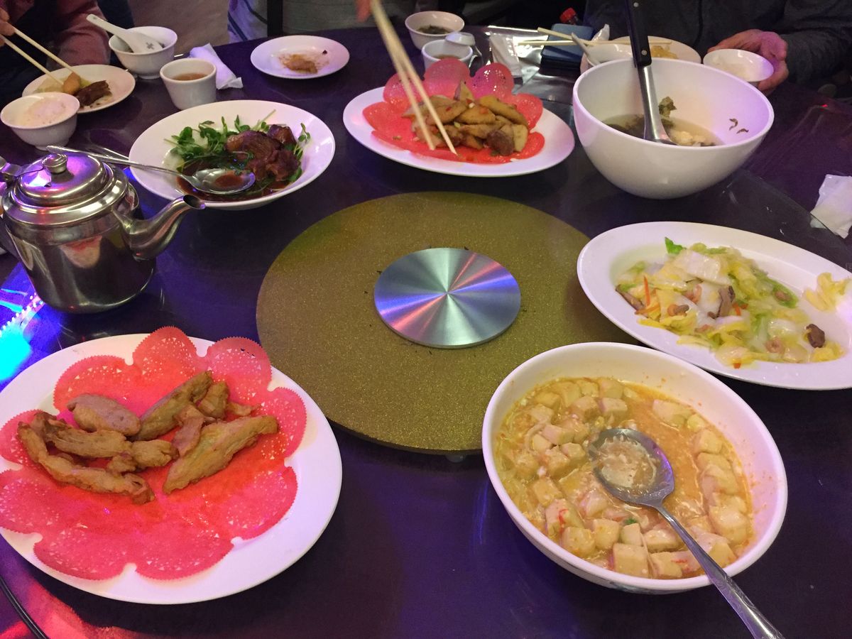 夕食は、バス駐車場に新しく出来たというレストランでごはん+スープ+おかず5品+デザートをいただきました。