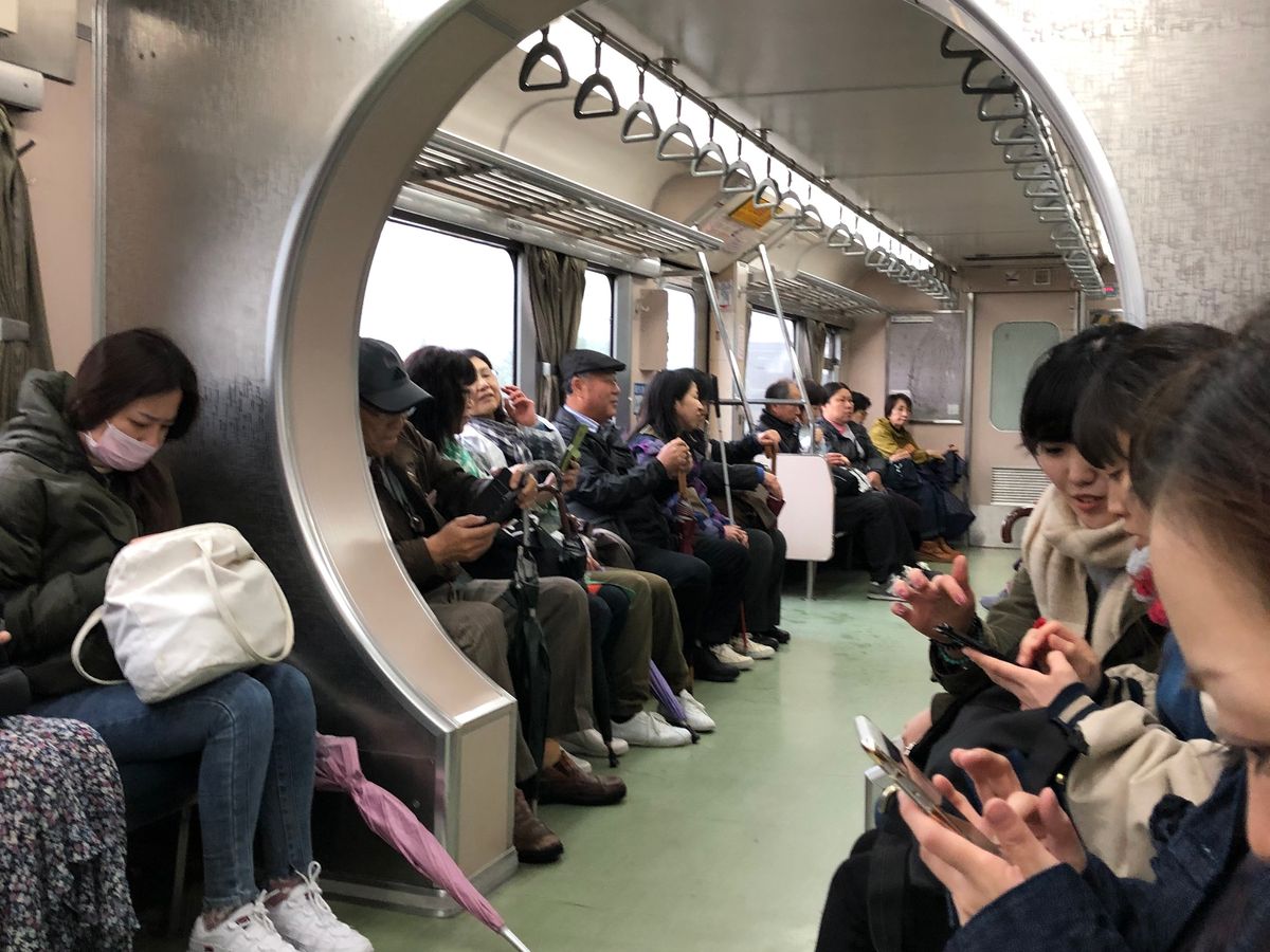 ローカル電車と食事は…想像と違かったかな。電車内は現代の物と変わらない感じで車窓からの風景も山道を走ってるので、特に感動はなし。食事は駐車場前の店の端っこの円卓をツアー客で囲んでいただきました。
