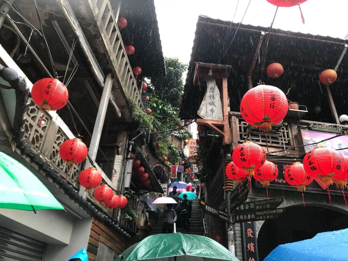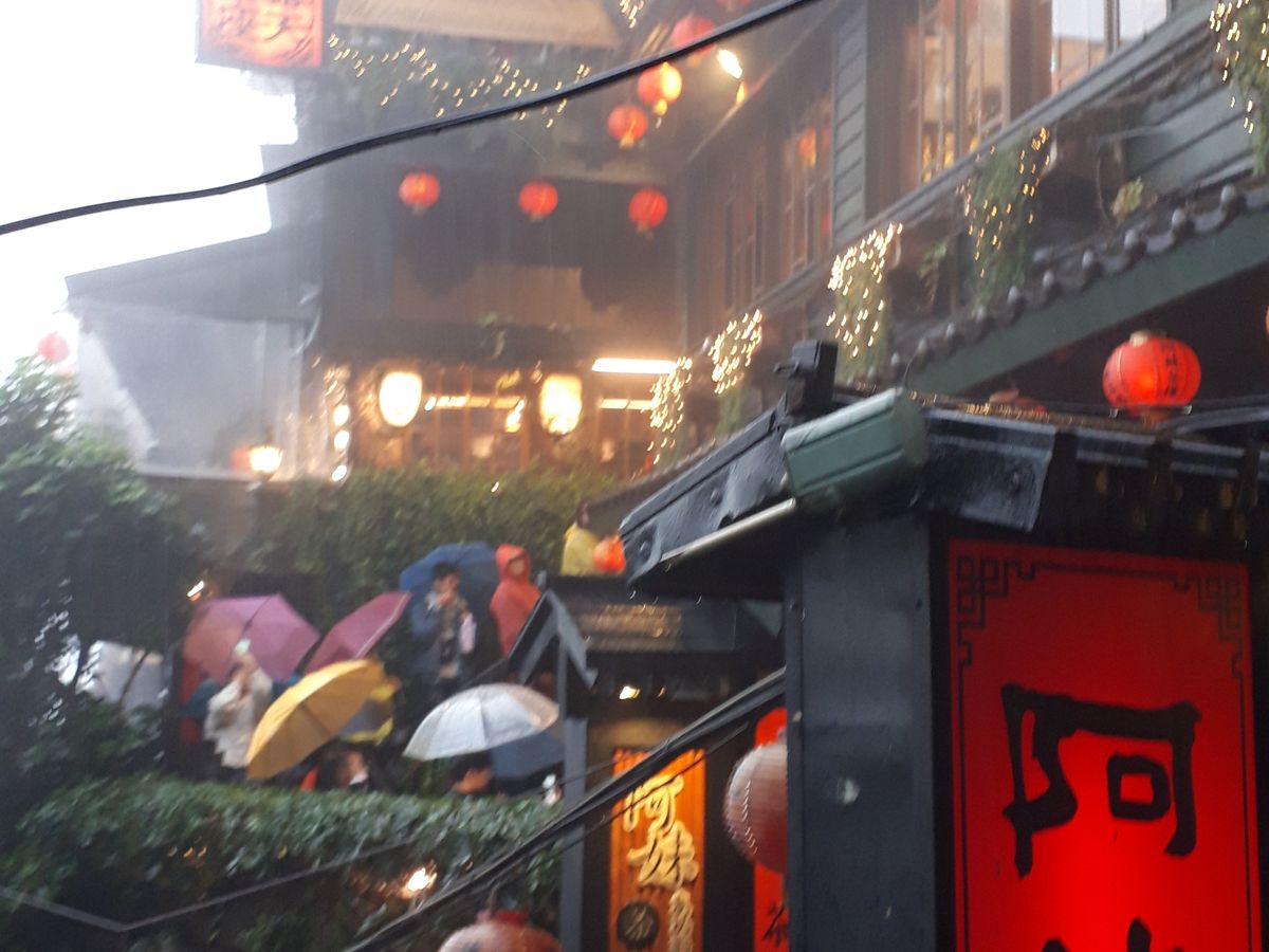 台北市内からすでに雨でしたが 九份は横なぐりの雨で全身 びしょ濡れになりました。でも朝早い時間と雨という状況で、日曜日にかかわらず観光客はまばらでゆっくりまわることができました。素敵な景色に雨も気になりませんでした。むしろ趣きがあって雨も素敵と思えました。しかし九份で雨に濡れ、帰りのバスの冷房で冷え切りました。防寒には注意です。