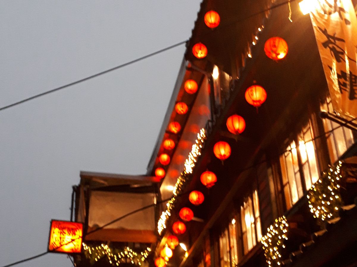 夜の九份は台湾の連休のせいか、激混みで石段は大渋滞、上りも下りも全く動かず、後ろから押されると間違いなく将棋倒しの大惨事になるほどでしたが、皆さん比較的冷静で大事には至りませんでした。