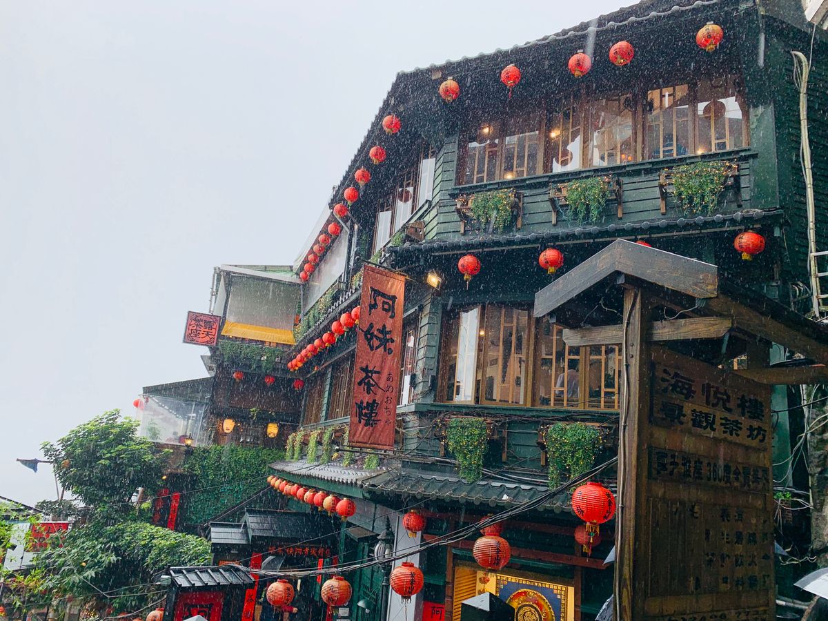 九份はあいにくの土砂降りでテンション下がり気味でしたが、頑丈な傘をお借りして出発。おしくらまんじゅうのようなメイン通りを常に気遣いながら先導してもらい、ご案内いただいたお茶のお店でゆっくり過ごすことができました。雨でなければ良い景色が見えたのに...それだけが残念。