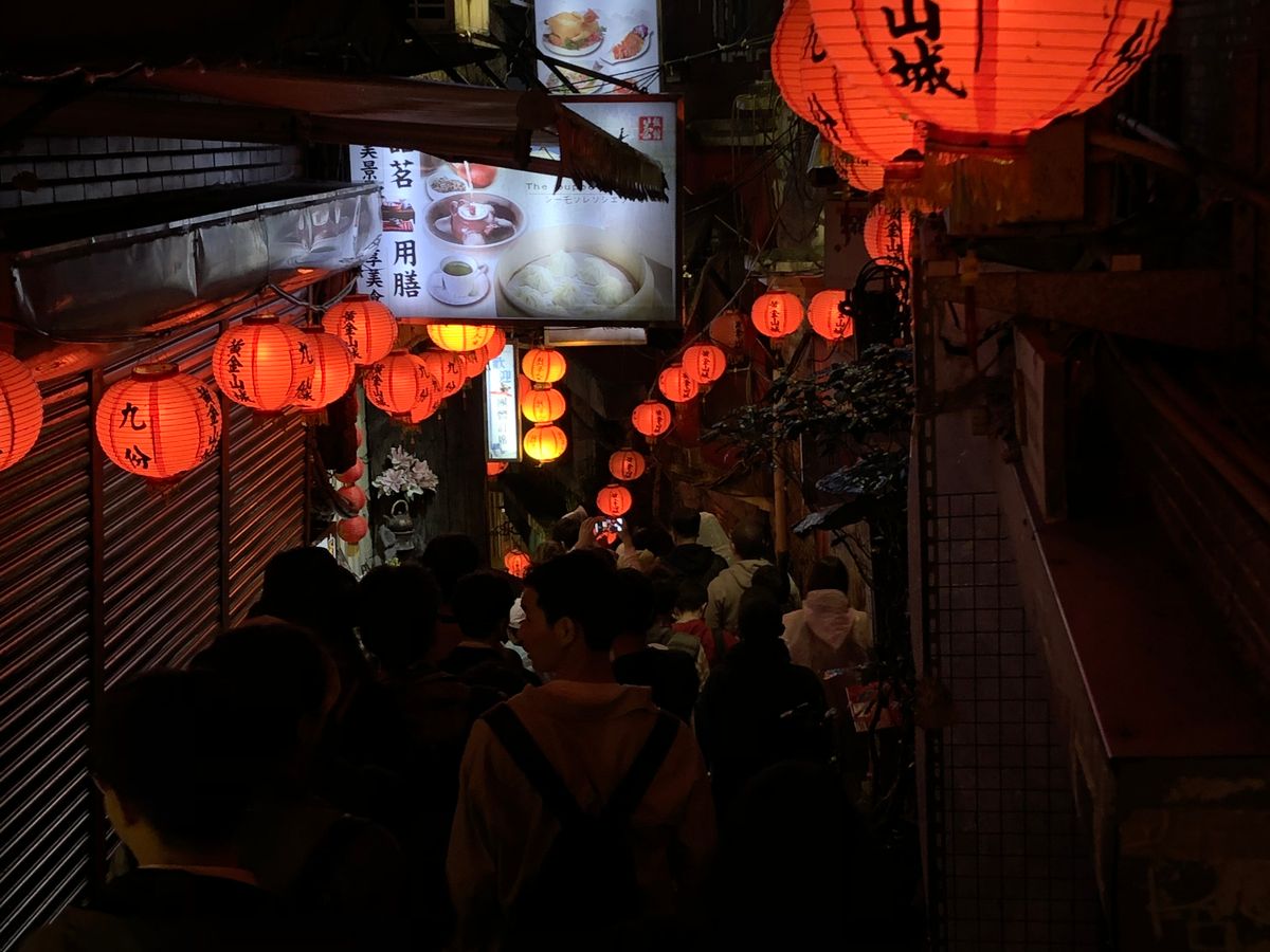 夜の九份のメインの階段は非常に混雑しており、いつか人の雪崩が発生しそうです。足の悪い人はかなり苦労をしそう。少し回り道をするか、昼のツアーが良いかも。