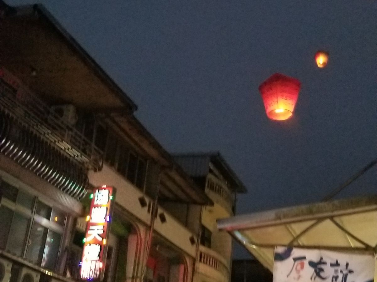 十分ではほぼ雨はやみ、そんな中天燈上げをしました。