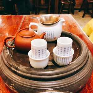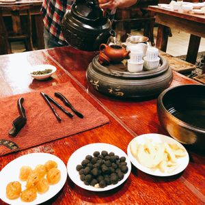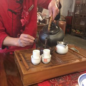 茶藝館でゆっくりお茶をして1時間15分滞在。ここでトイレを済ませらのが正解です。(私たちは阿妹茶楼にしました。コースなのでお茶の葉を選んでとかはできないみたいです。)