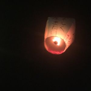 願いを込めて書いたランタンが上がっていくのは感激です。