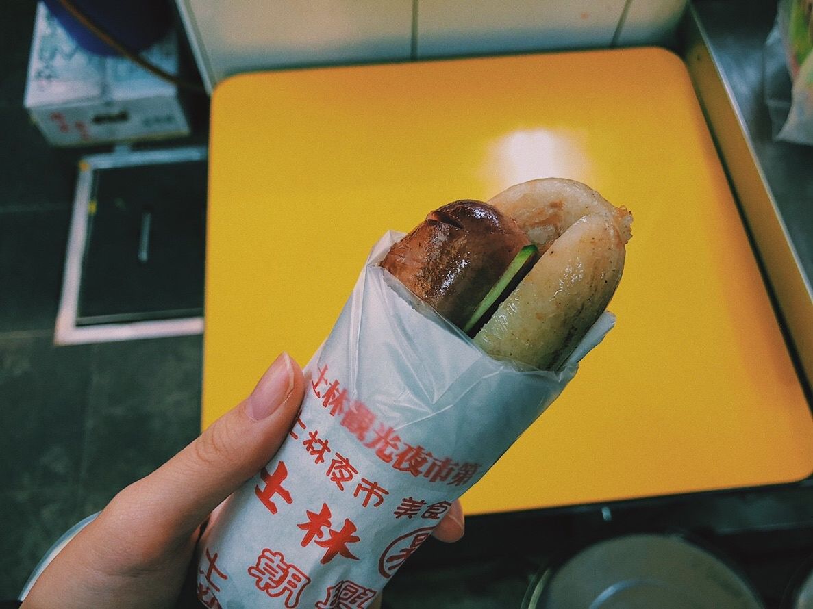 帰りは士林夜市に寄って大腸包小腸を食べました。