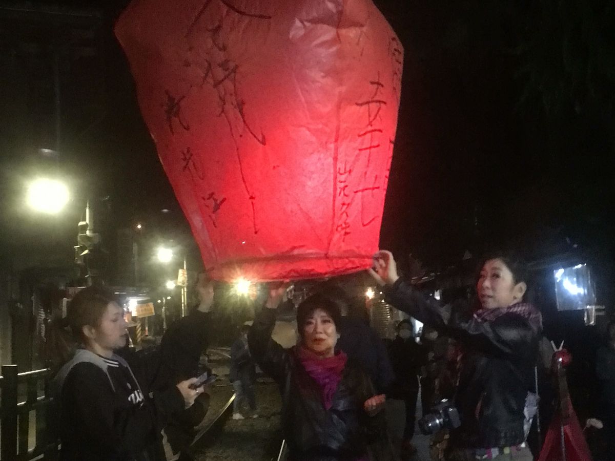 その後十份で幻想的な夜のランタン上げを満喫、