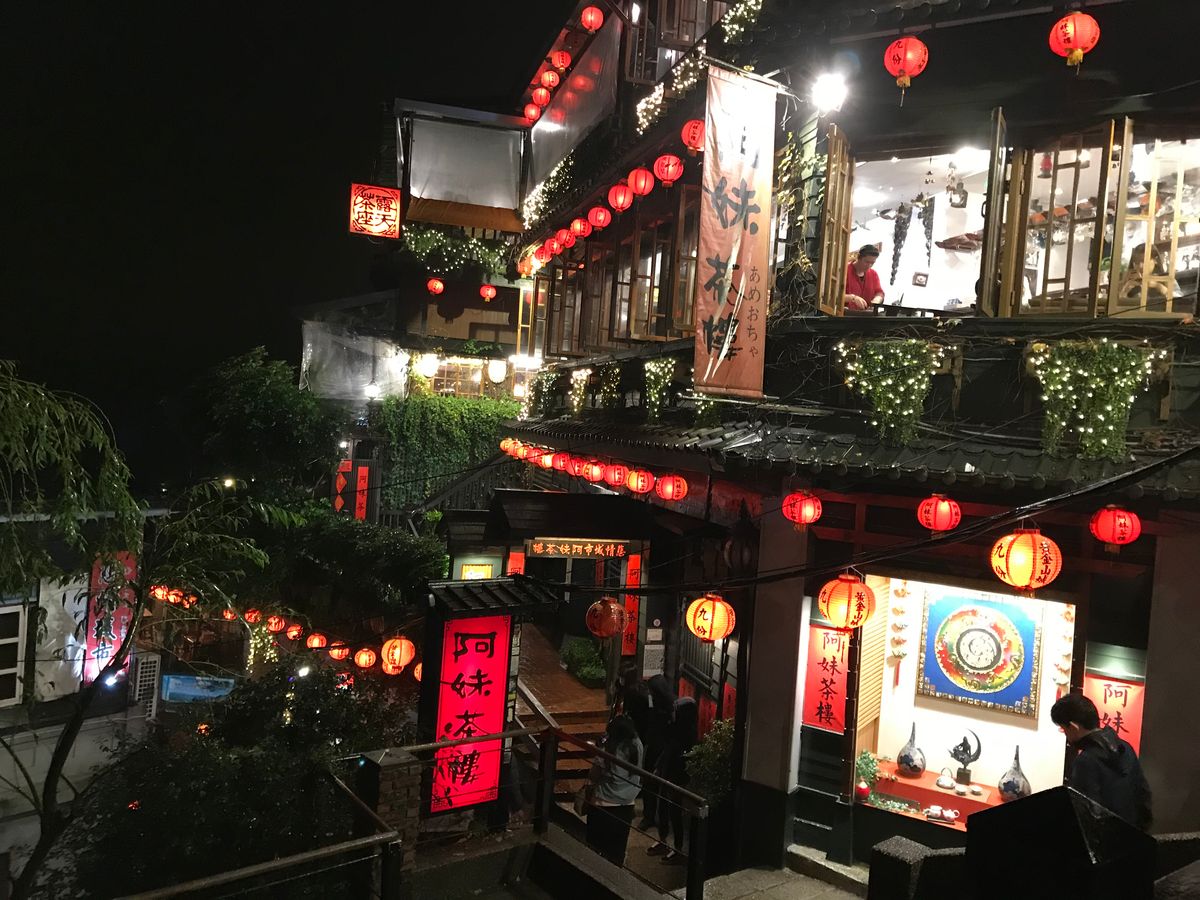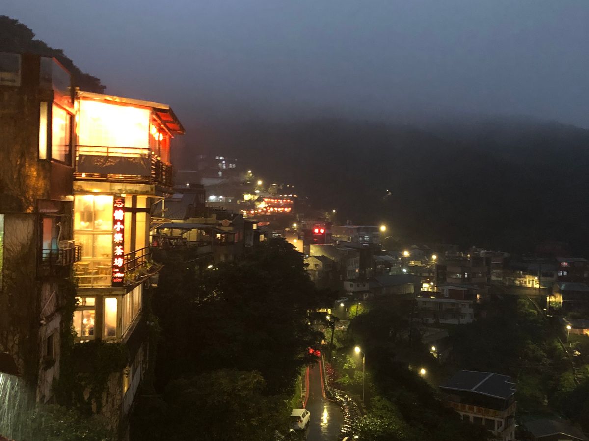 九份に近づくと、台北市内よりもさらに雨が強まりましたが、19時過ぎの九份は観光客も少なく、霧が出た風景は幻想的で素敵な風景でした。お茶屋さんにも予定通り入ることができ、楽しみにしていた台湾ウーロン茶をいただきました。すごくおいしかったので、同じお茶の葉をお土産に買って帰りました。