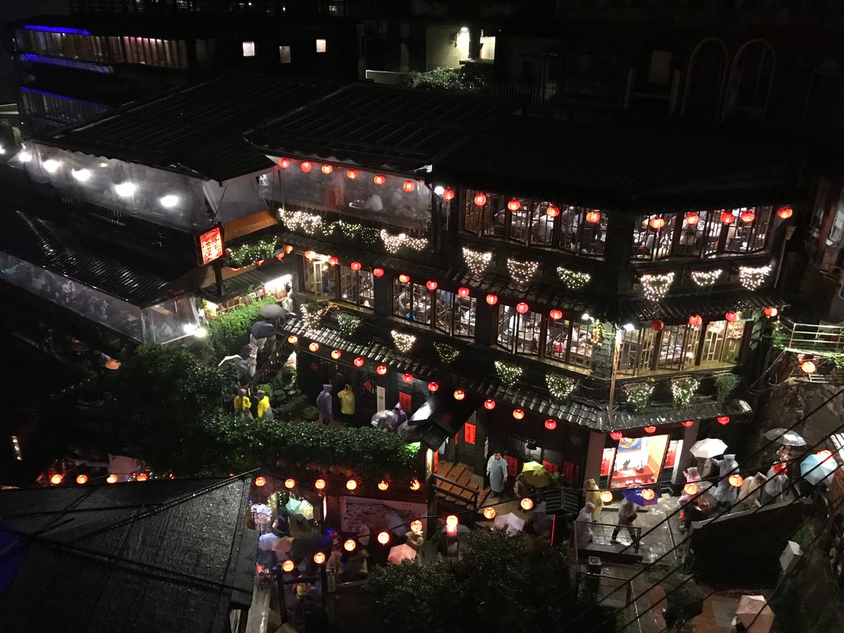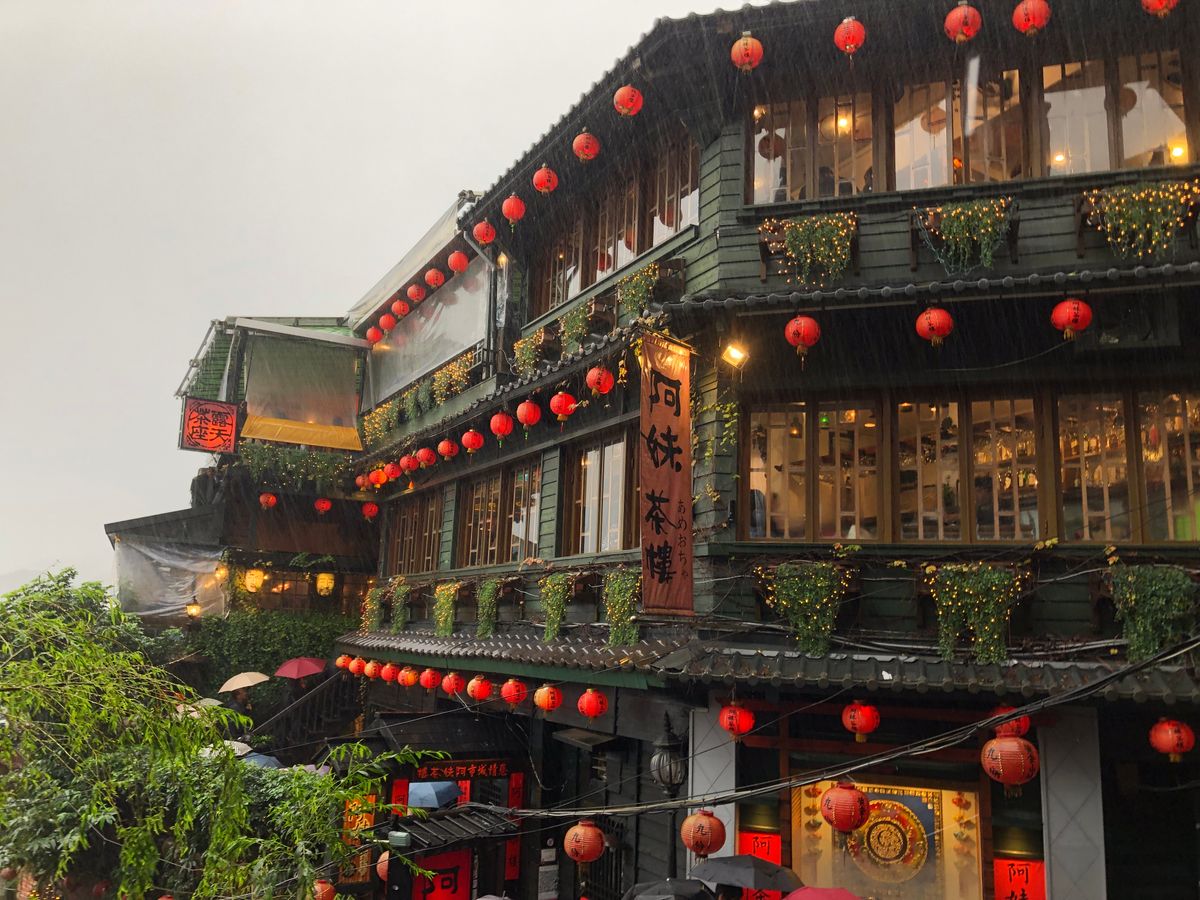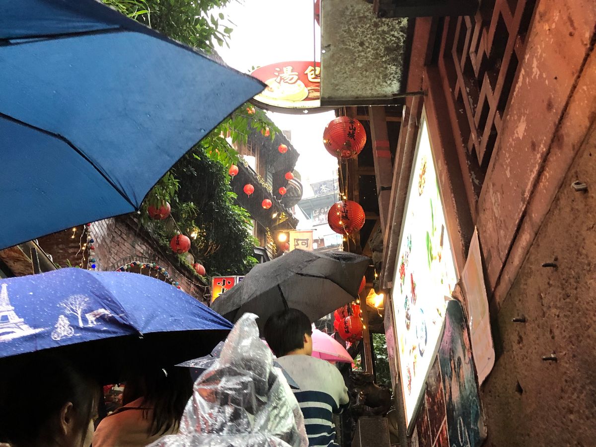 九份は到着した時はもやがかかっており、展望台からの景色は真っ白でしたし、歩き始めたらまるで台風かのように雨風が強くて、大変でしたが、干さんのガイドのおかげでとても楽しかったです。