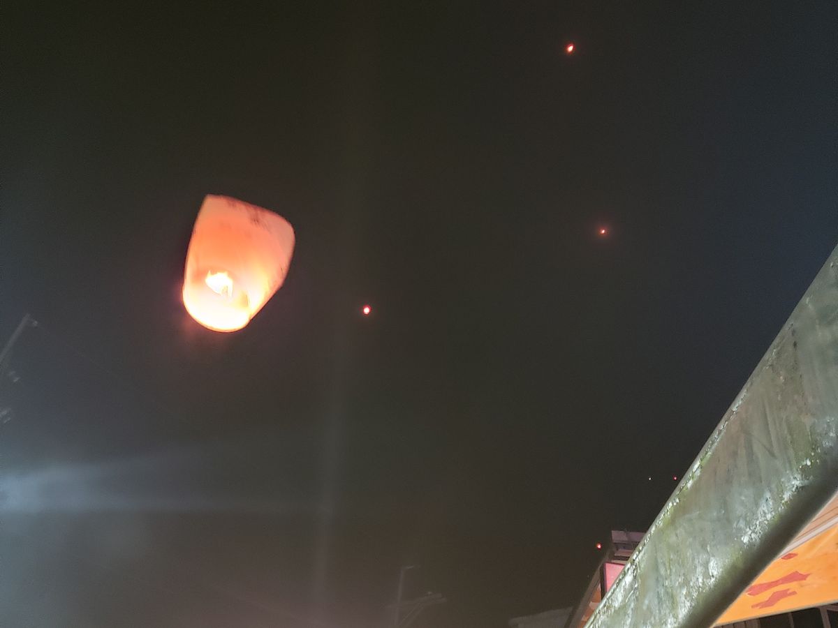 十分の天燈上げは風の影響で飛ばすことなく燃えてしまった方もいらっしゃったのがかわいそうに思いました。幸い私自身は無事に上げる事ができました。