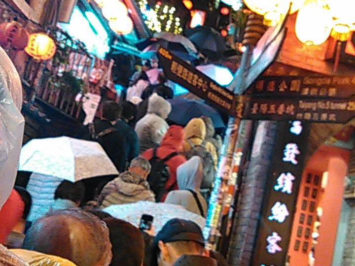 九分は道が細く人が多いので、雨が予想される時期は傘やレインコートは必携です。現地で買ったレインコートが役立ちました。