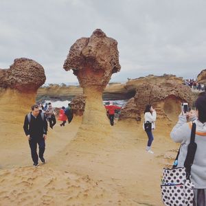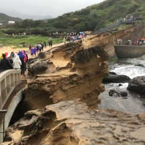 野柳の景色は不思議で、冬で波が荒かったのもあり波の花も見られてラッキー。立ち寄りを依頼していた十分の滝は雨だったので一番奥まで行くのはやめましたが参拝スポットやちょっとしたお店もあり楽しめました。