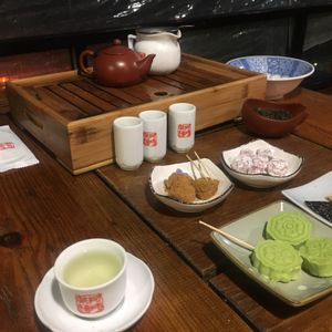 お土産購入、お寺(?)のお参り、阿妹茶館でゆっくりお茶ができました。