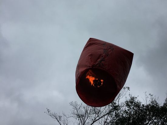 あいにくの雨にも関わらず十分ではランタンを上げるすばらしい動画を撮ってもらいました。