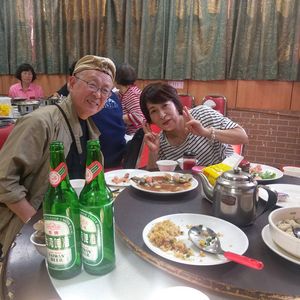周りは、ほぼ中国の人ばかりだったのですがもう1組日本人グループが参加されてました!!!そして通訳係のお友達と一緒というなんと、幸運な事が起きました。私達も、何かある度そのグループの方にお世話になりながら楽しく安心して、ツアーを満喫する事ができました。観光の順番は、確かに申し込み時の内容と違い十分から九分そして、野柳、バイナップルケーキ作りでした。十分の時はガイドさんのおすすめのご飯屋でみんなで行って食べる事が出来ました!!混んでましたので、自分達では絶対に注文すら出来ない入れないと諦める所ラッキーでした!