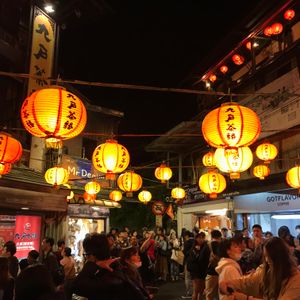 九份の提灯は雰囲気があり素晴らしかったです。そのあと、十分に行き天燈を飛ばしました。ほとんどの店が閉まっていましたが、ツアーで行ったおかげで待つこともなく、天燈に字を書き飛ばすことができました。夜空に浮かぶ天燈はとても幻想的で美しかったです。