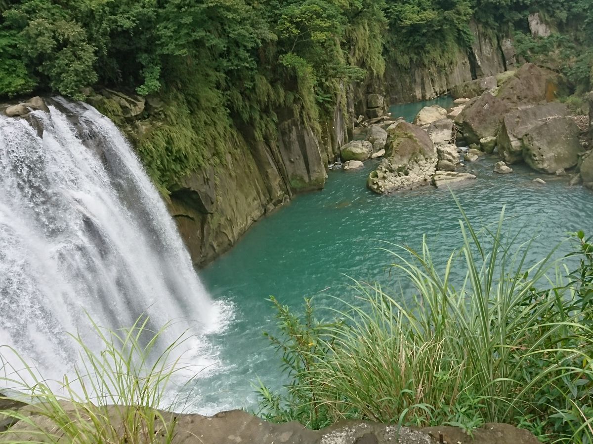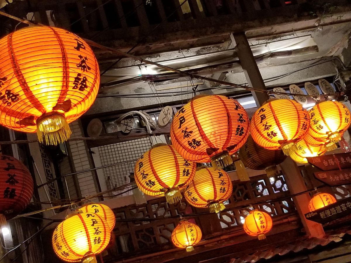 前回行った十分も九份も台風で天燈上げが大変でしたが、今回は朝から雨でしたが風はなく、天燈上げはバッチリでした。十分の滝は初めてでしたが遊歩道を下に降りて写真を撮りました。ローカル線は冷房が効きすぎて寒かったです。九份の食事は普通でしたが、全体的に味は濃くなくて良かったです。また、たっぷり時間がありましたので、基山街をゆっくり往復したり、いつもは写真を撮るだけの阿妹茶館でゆっくりとお茶を楽しめました。帰りは台北駅の近くで降りて解散になりましたが、その後、MRTで士林夜市へ行きました。