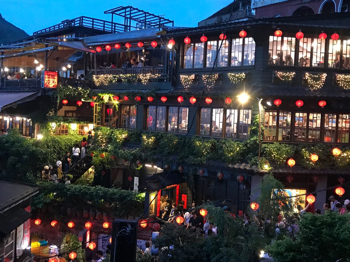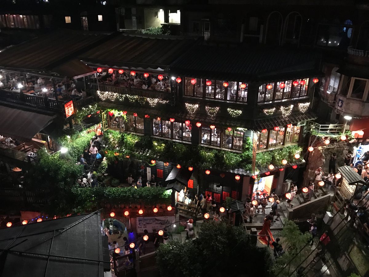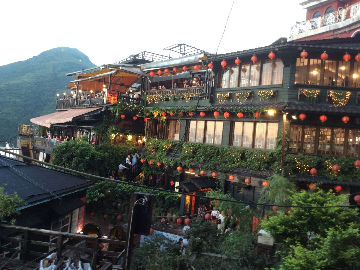 ガイドブックによく乗っている景色の写真を撮りたい人は、ちょっとお値段のお高い九份茶房のお茶屋さんから撮影できるので、夕暮れ前に並んで座ると良いです。かなり、長蛇の列ができます。